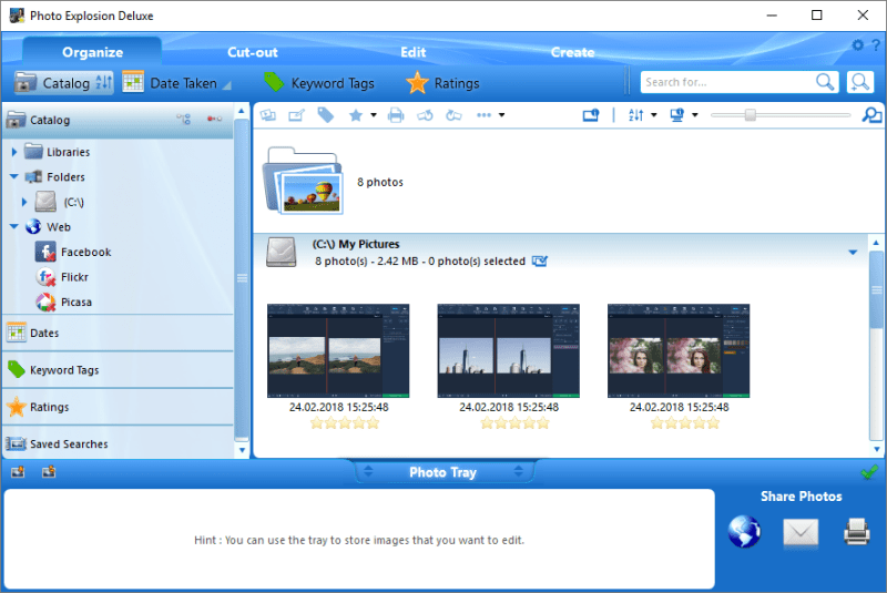 В целом вы получите доступ более чем к 3000 шаблонов, некоторые нужны для создания открыток, друге для календраей, третьи для плакатов. Есть обычный просмотр, есть редактирование, сортировка и так далее. Создавайте альбомы прямо на экране, вешайте теги, ключевые слова, выставляйте рейтинги, потом найти нужное фото будет проще.
